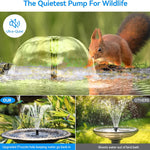 - Tierfreundliche Solarpumpe: Dieser Solarbrunnen verfügt über eine ultraleise Pumpe. Das Plätschern des fließenden Wassers lockt Vögel an und bietet ihnen einen sicheren Sitzplatz für eine Trinkpause oder ein kurzes Bad. Keine Angst vor aus dem Becken spritzendem Wasser. Unsere Pumpe verfügt über ein 5°-Sprinklerloch, das den Wasserkreislauf aufrechterhält und so ein Auslaufen des Vogelbades verhindert.