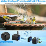 - Integrierter Akku-Backup: Die Solarbrunnenpumpe für Vogelbäder verfügt über ein leistungsstarkes 6,5-W-Solarpanel und einen integrierten wiederaufladbaren 2400-mAh-Akku zur Energiespeicherung. Die Solarpumpe läuft auch an bewölkten Tagen, im Gegensatz zu anderen Pumpen, die ständig volle Sonne benötigen. Hinweis: Dieser Solarbrunnen funktioniert nachts nicht.