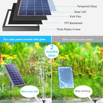 - Verbessertes Glas-Solarpanel: Dieses 6-W-Panel besteht aus 100 % Glas und Solarzellen der Klasse A+ und bietet eine stärkere Energieumwandlung für stabiles, lang anhaltendes Sprühen. Im Gegensatz zu Kunststoff verzieht oder reißt das Glas nicht.