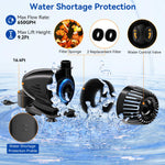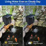 - [Leistungsstarke und ultraleise Solarwasserpumpe] Die mitgelieferte 40-W-Solarwasserpumpe liefert einen starken und dennoch gleichmäßigen Wasserfluss von 580 GPH und sorgt für einen zuverlässigen und gleichmäßigen Wasserfalleffekt. Mit ihrem bürstenlosen Motor für einen leiseren Betrieb ist diese Pumpe energieeffizient und langlebig. Der mitgelieferte Filterbeutel hilft, Schmutz aufzufangen, sodass Ihre Pumpe nicht verstopft und Ihr Teichwasser kristallklar bleibt.